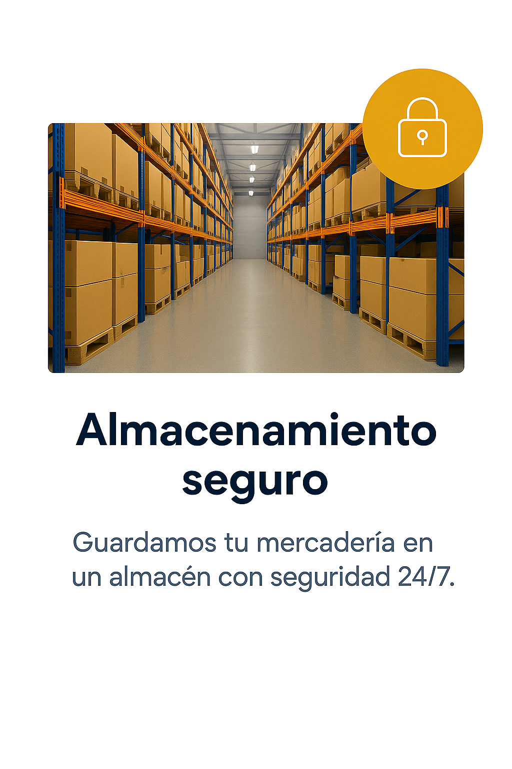 Almacén propio de 140 m² con sistema de seguridad y cámaras de vigilancia.